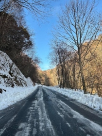 凍結道路をなめたらいけませんっ! 山の中での事故は大変です・・・
